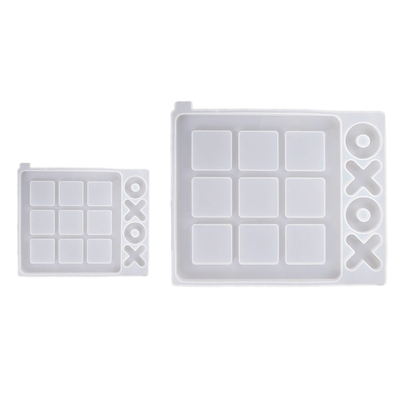 Large Tic Tac Toe Resin Molds: Set includes two sizes—large (8.4×9.8") uses ~11.6oz resin; small (4×5") uses ~1.1oz. Great for home or travel games.