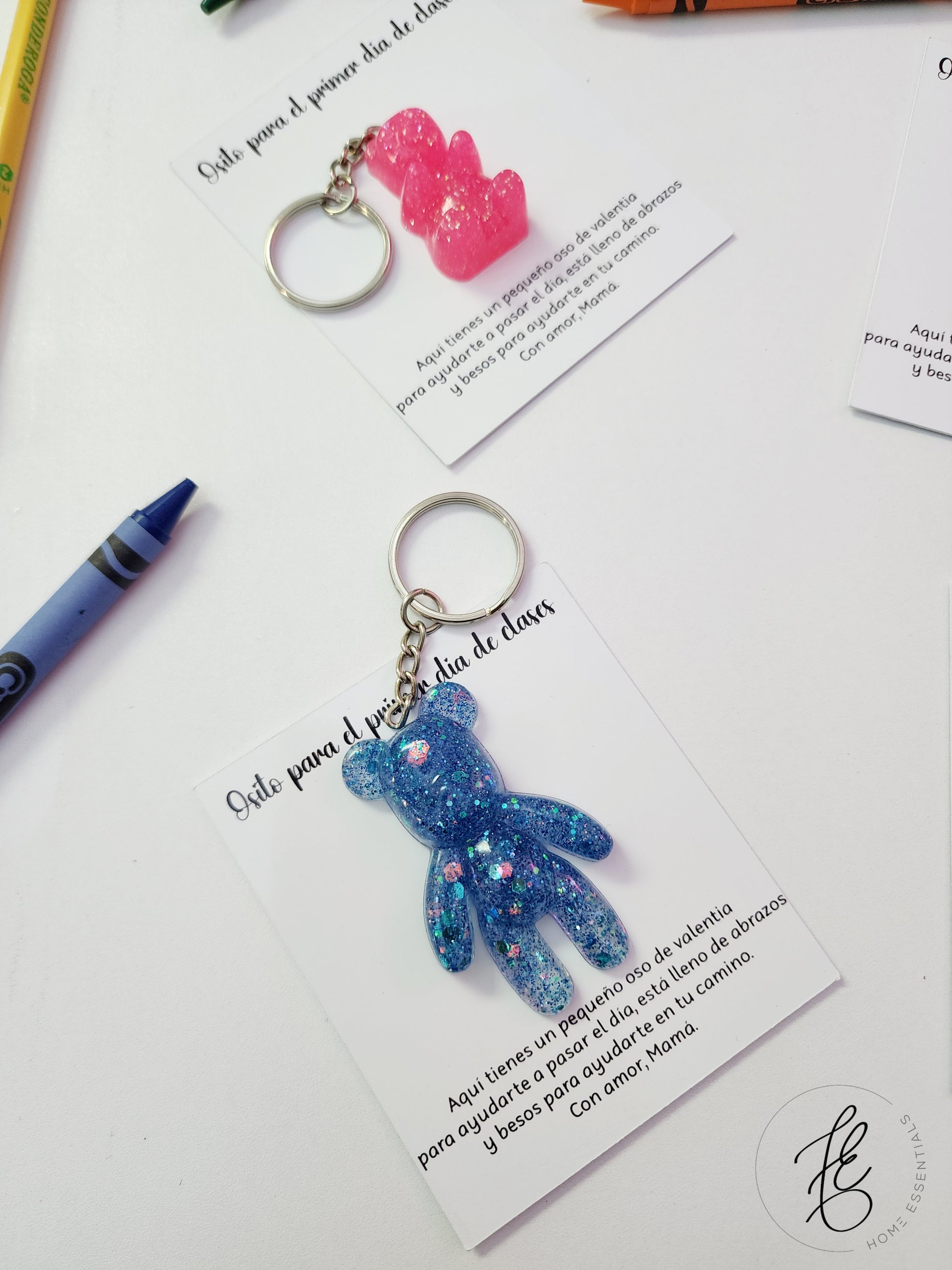 Give your child a special keepsake for their first day of school with our epoxy resin teddy bears. This little companion buddy is designed to provide them with courage and company during those first days that can be a bit challenging. With two options available, just the teddy bear or the teddy bear with a keychain, it's perfect to hang on their backpack and remind them that mom or dad is always with them. A thought even the older kids will love. Choose the color you like the most and make their day start full of motivation