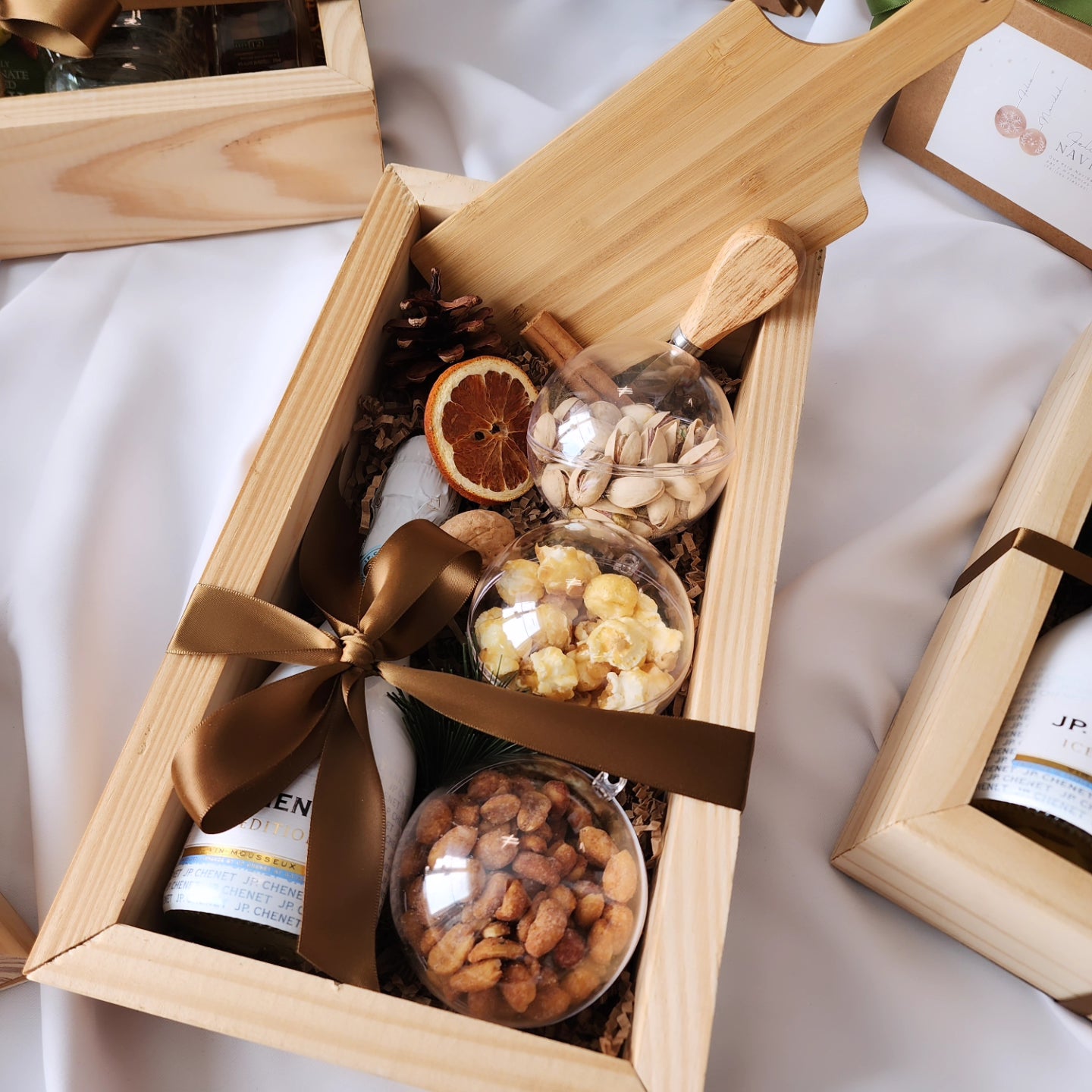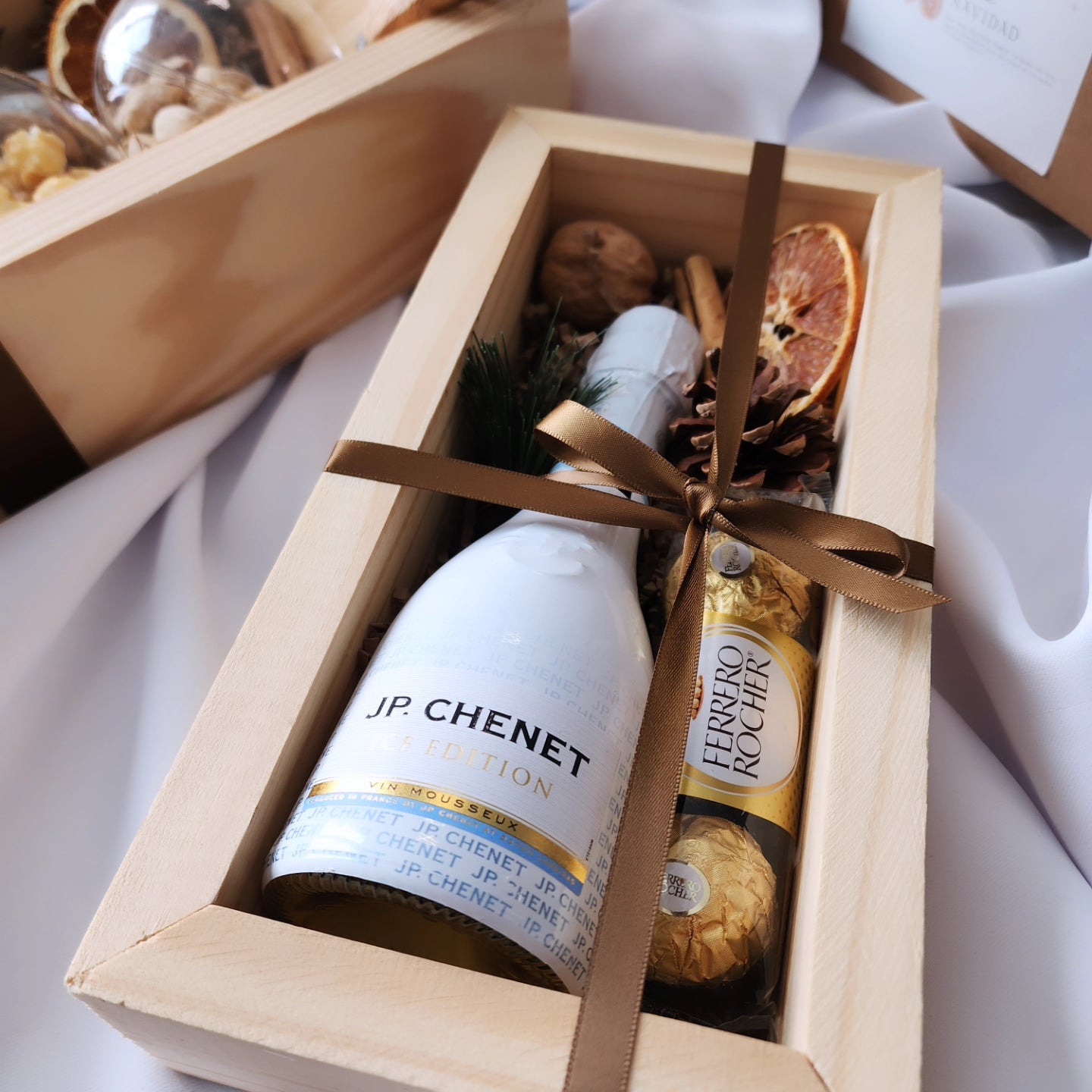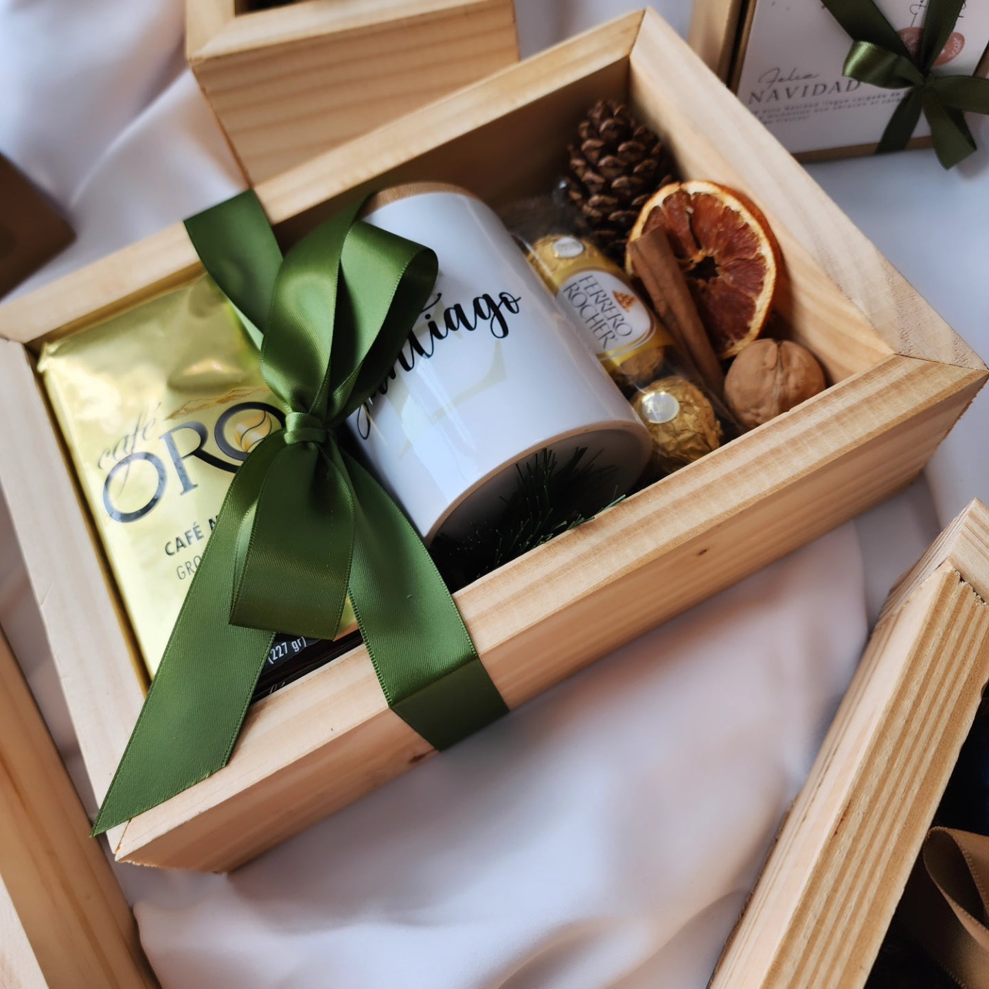 Este año apostamos por una paleta neutral, cálida y sofisticada, combinada con acentos en madera que realzan cada detalle. Cada pieza fue pensada y creada meticulosamente, desde los lazos hasta las texturas, para lograr regalos que se sienten elegantes, modernos y con ese toque acogedor que tanto nos gusta.