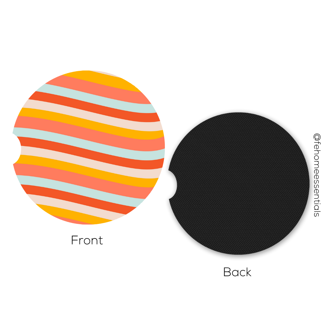 These coasters feature a permanent sublimated design, these car coasters are built to last. The high-quality printing process ensures that the design remains vibrant and intact, even with everyday use and exposure to sunlight. Measuring at a convenient 2.75 inches in diameter, these circular car coasters fit most standard cup holders with ease. The perfect size ensures a snug fit, preventing spills and condensation from causing damage to your car's surfaces.