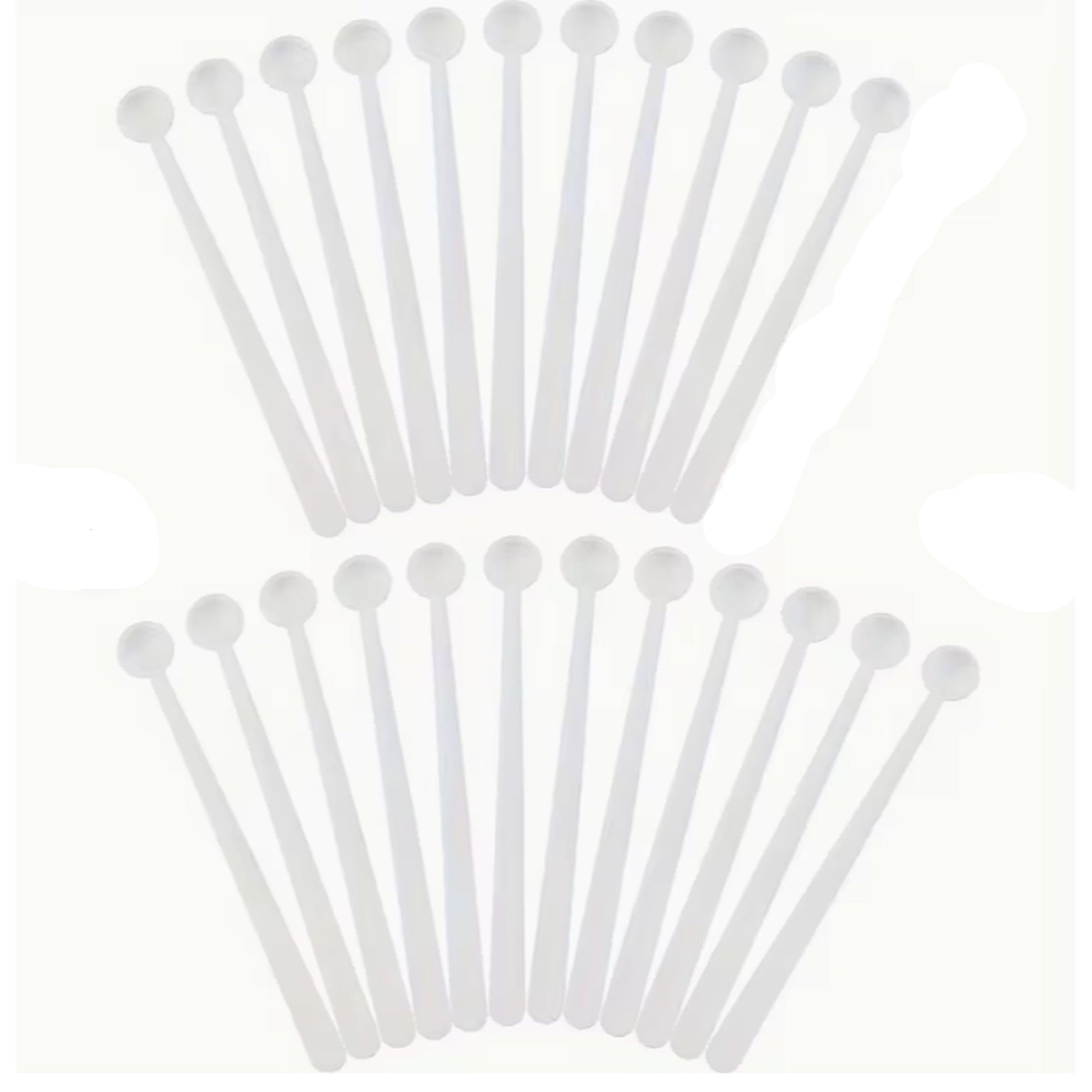 Mini plastic powder scoops hold 0.005 oz, ideal for precise measuring of glitter, mica, and other fine powders. Compact and easy to use for crafting or mixing small quantities.